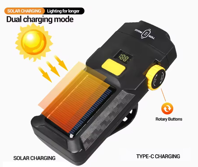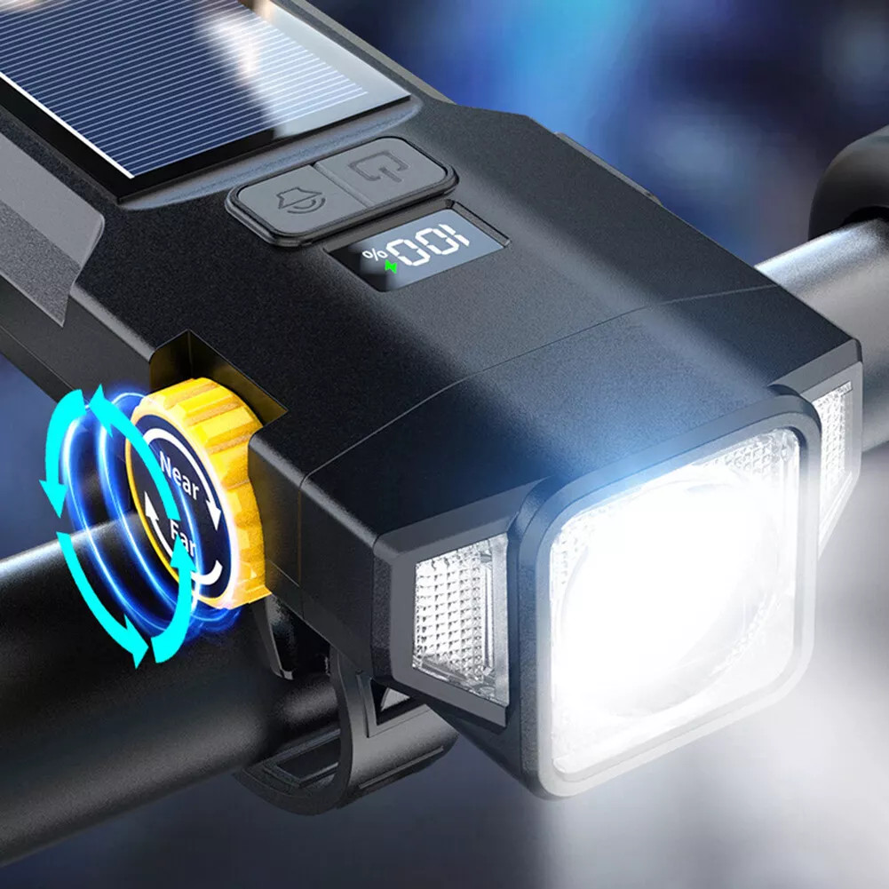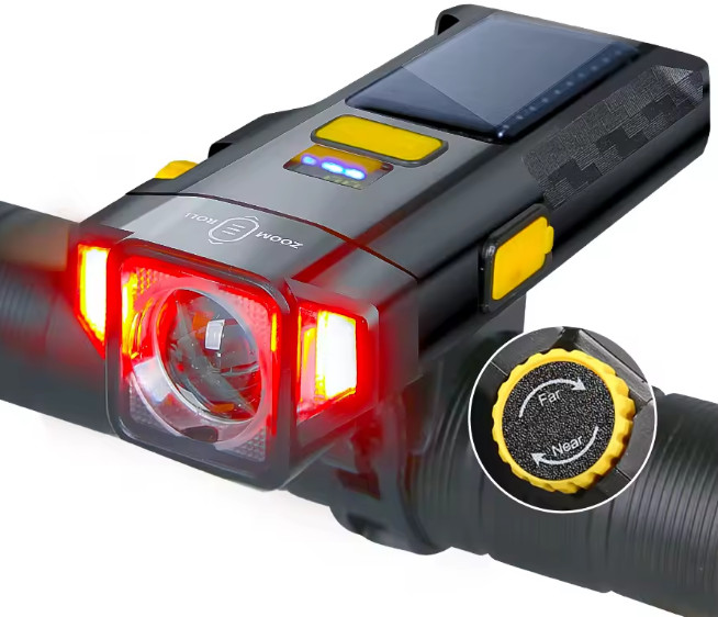 EXTRA ERŐS FÉNYŰ NAPELEMES AKKUMULÁTOROS ELSŐ BICIKLI LÁMPA ZOOM
