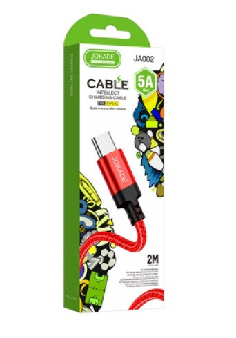 USB-A - TYPE-C ADAT ÉS TÖLTŐKÁBEL 5A 2M PIROS SZÖVET BEVONAT JOKADE JA002